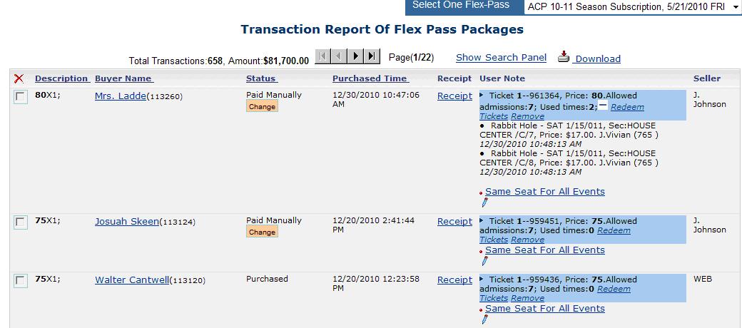 A huge option is the package patron does not need to determine actual seating preference at the time of purchase. The package patron can secure the seating through his/her patron ticketing account by at a later time. Therefore, the event management can even sell the packages without any events available (like seating, pricing and event time). An announcement can be made later to notify the package patron to select the seating of any available events additionally, at the option of the Box Office Manager, each season ticket patron can automatically be assigned a username and password, and so they may login to select their own seats.